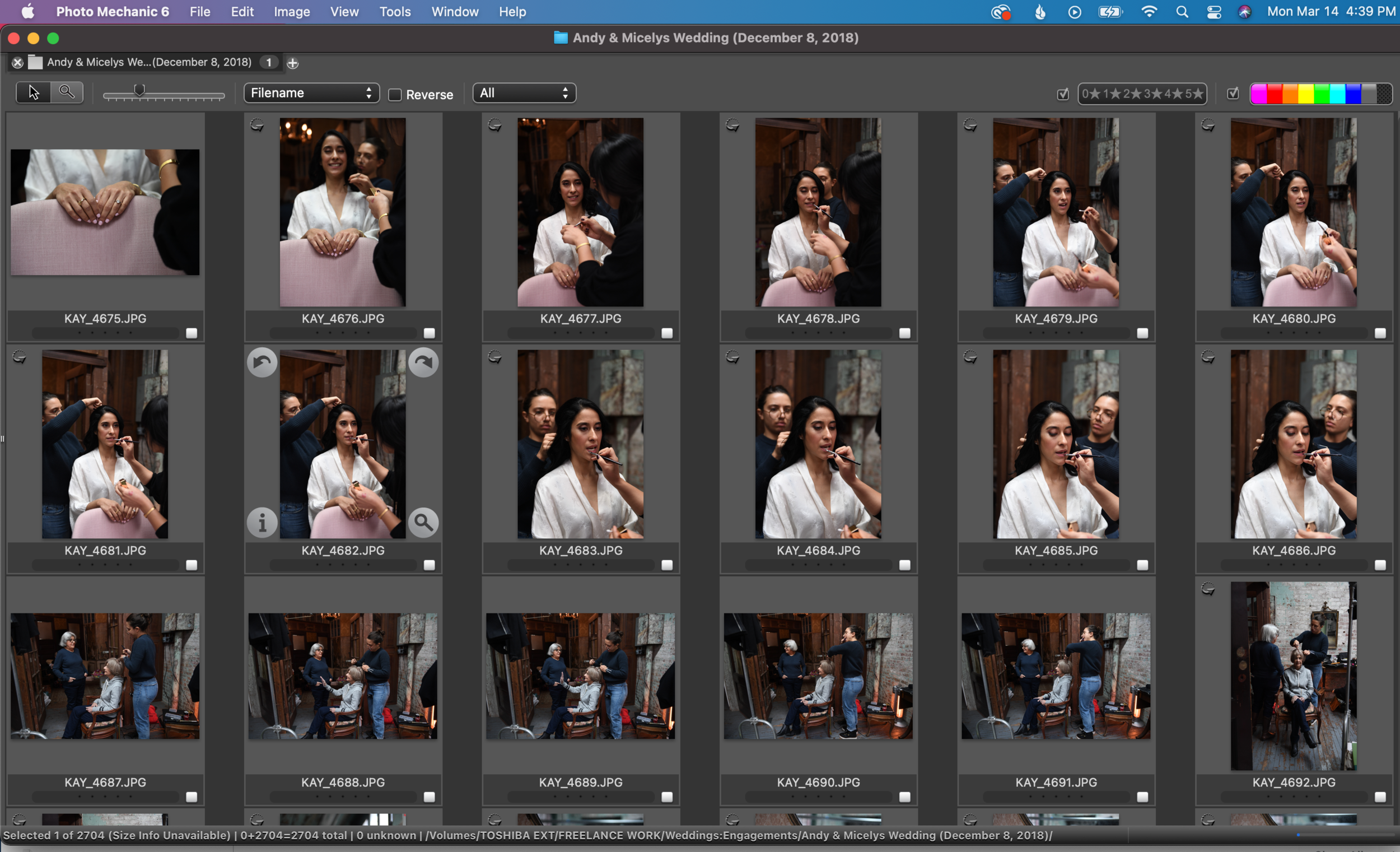 I shoot well over 1000 images throughout the course of a typical 8-10 hour wedding day. This means that going through a full shoot and selecting the images that should be delivered to the client takes a lot of time and focus. I typically spend an hour or two on the first selection, then on another day when I have fresh eyes, I will refine my selection even more. I make sure to only deliver the images that are up to my high standard, which means I do not include anything that is unintentionally out of focus, extremely unflattering, or otherwise lacking. Often, I will photograph 5-10 frames of the same moment and so I will spend time picking out the 1-2 shots in that series that stand out as the strongest. The images that I choose to deliver at the end of my editing process will potentially be posted, printed, or otherwise shared and will represent my brand, and so I take great care in the selection process to choose the best, most beautiful or emotionally impactful images to deliver to my clients while still giving them lots of options for photos of each part of the day.