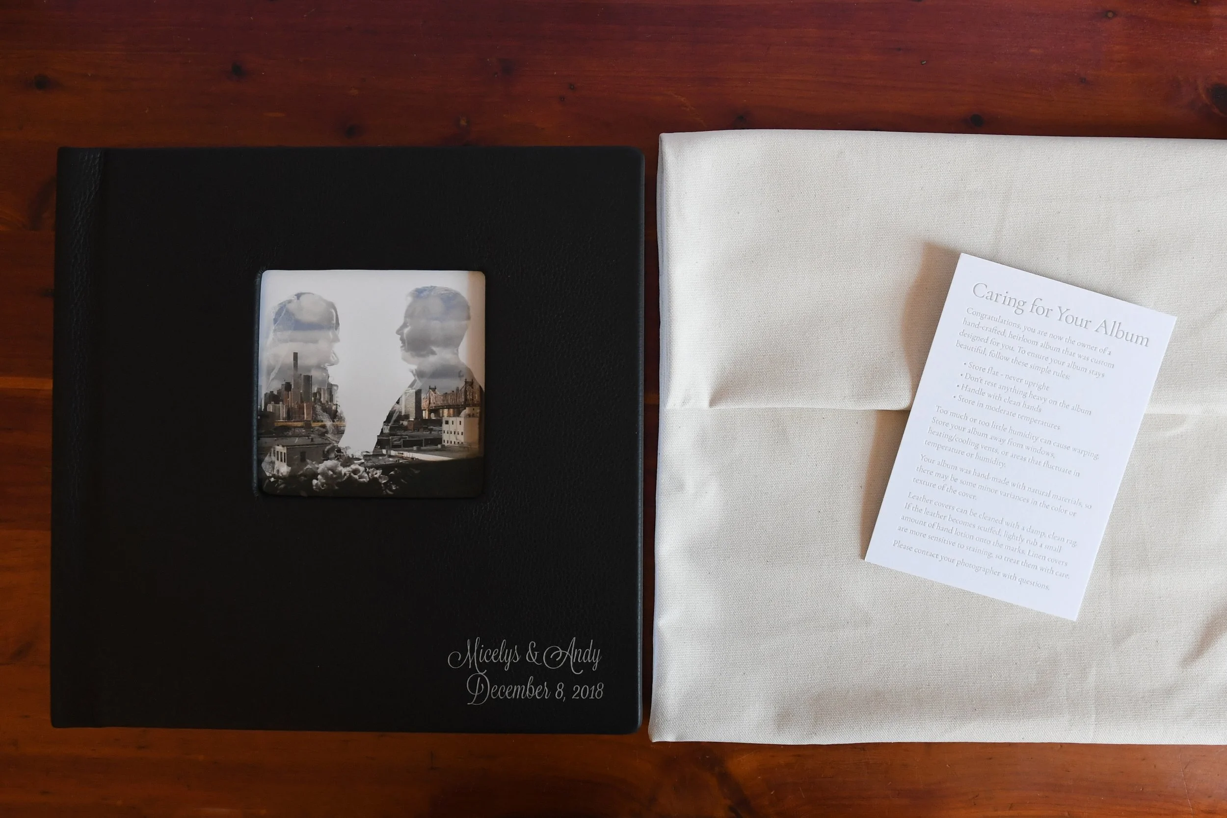 After the couple has viewed their gallery (and hopefully left me an amazing review!), they have the option to create albums with my design assistance. Most of my packages include an album, but it is always an option to add on after the wedding. I use Kiss Books for my albums because of their extremely high quality, wide range of design options and beautiful craftsmanship. They have options for both luxury heirloom albums in leather or linen as well as less expensive but just as beautifully made photo books.