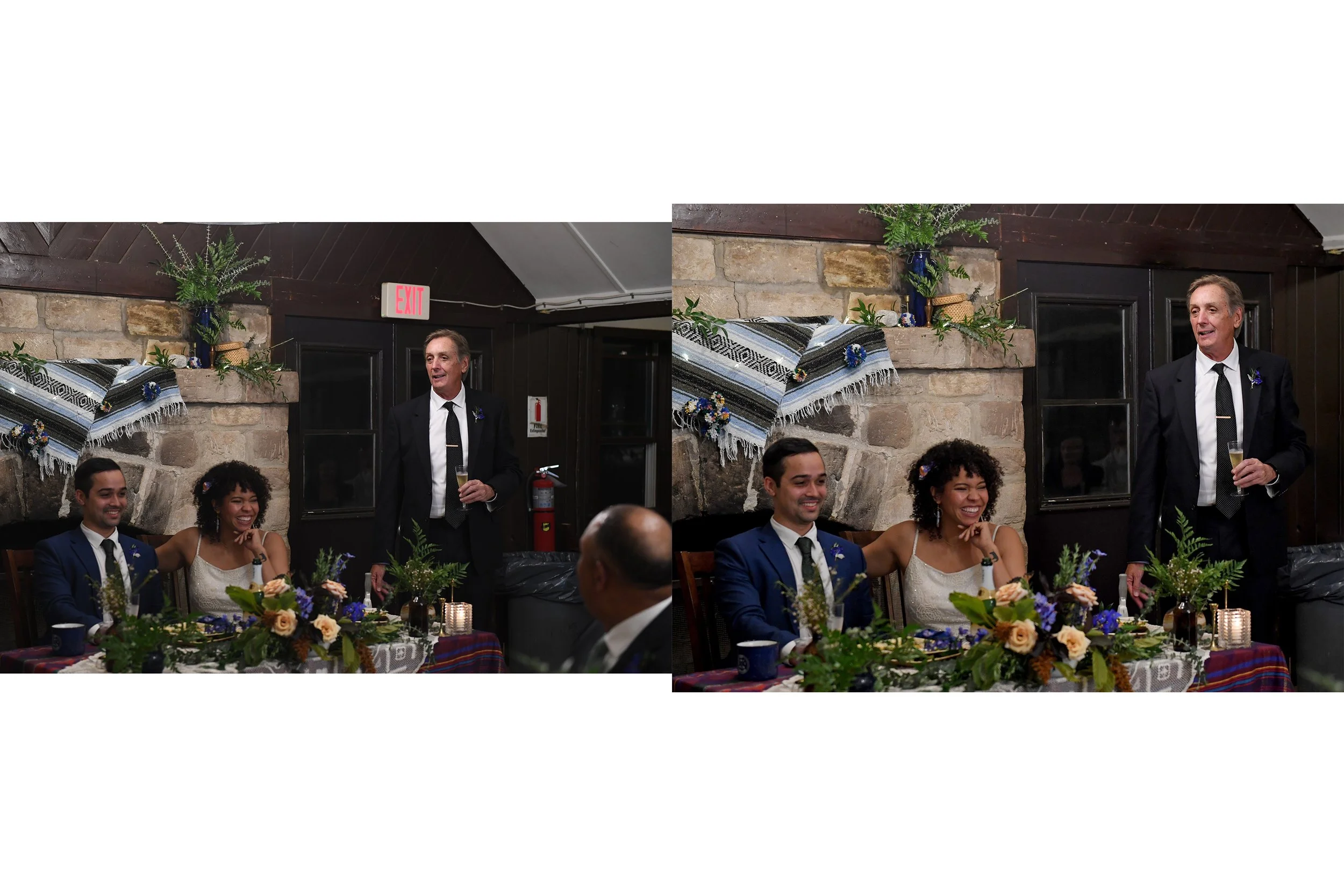 After the ceremony, I will spend the remainder of the day documenting moments from the sidelines - capturing friends and family at the cocktail hour and dinner, first speeches, dances, and important moments during the reception. I always like to stay for at least a bit of dance floor time since that is when the celebration really gets going and many of the guests will have had a few drinks leading to some fun photos with lots of personality.